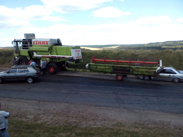 Після обіду 5 липня через несправність гідравлічної системи комбайна на дорогу витекло мастило. Поки водій намагався полагодити комбайн, під його жатку потрапили два автомобілі: "Volkswagen" та "Mazda". Одна автівка одразу після зіткнення злетіла на узбіччя.
