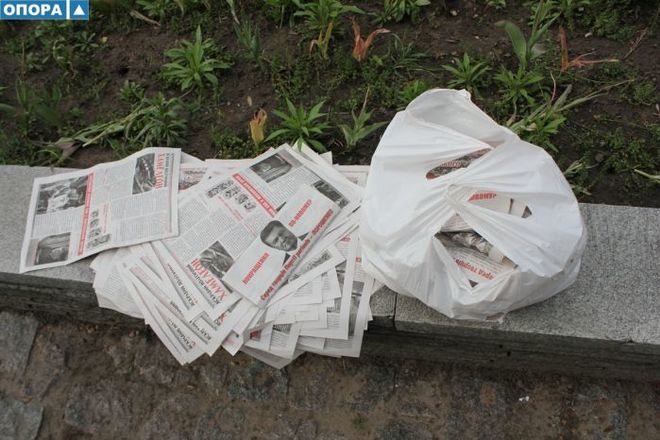 Як інформує ОПОРА, агітаційні газети проти Порошенка двоє представниць ВО "Батьківщина" роздавали перехожим на розі бул. Шевченка та вул. Святотроїцькій.