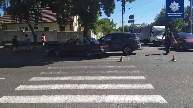 На перехресті вулиць Благовісної та Казбетської у Черкасах зіткнулись автівки Audi та Ford Kuga.