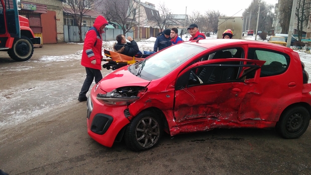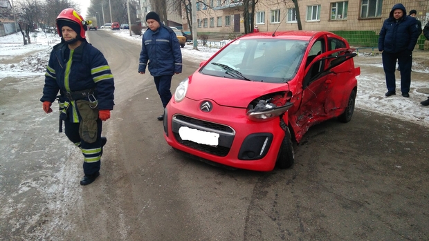 На перехресті вулиць Подолинського-Надпільна, внаслідок зіткнення автомобілів Citroën та Toyota, отримав травми та опинився затиснутим конструкціями автівки водій автомобіля Citroën.