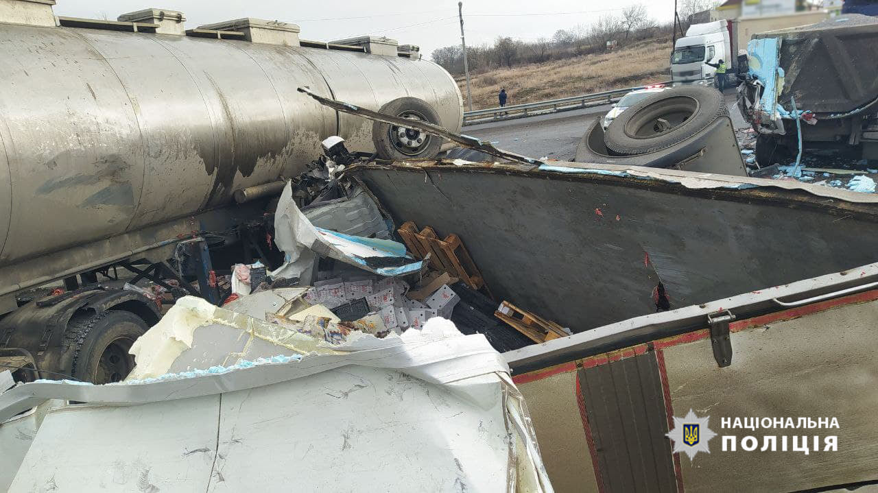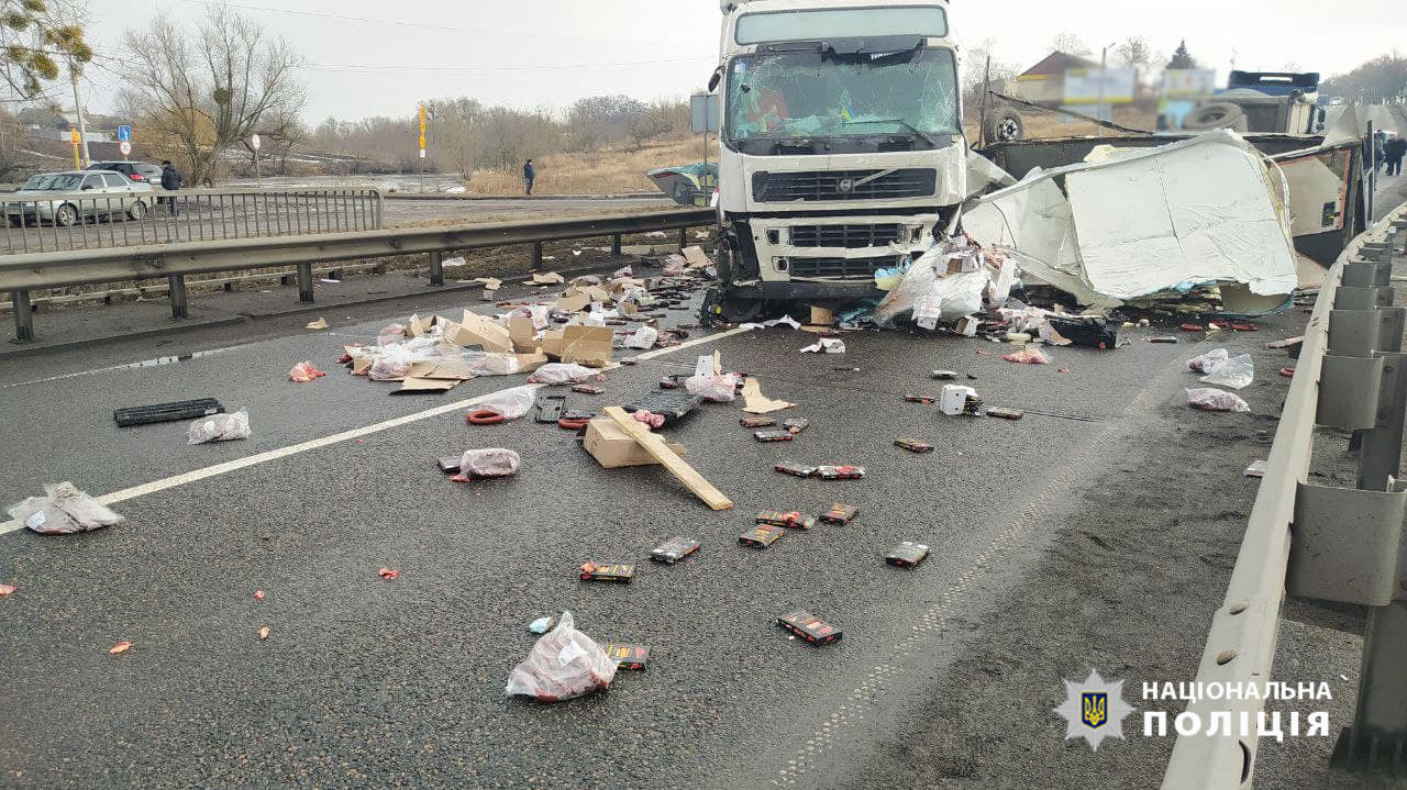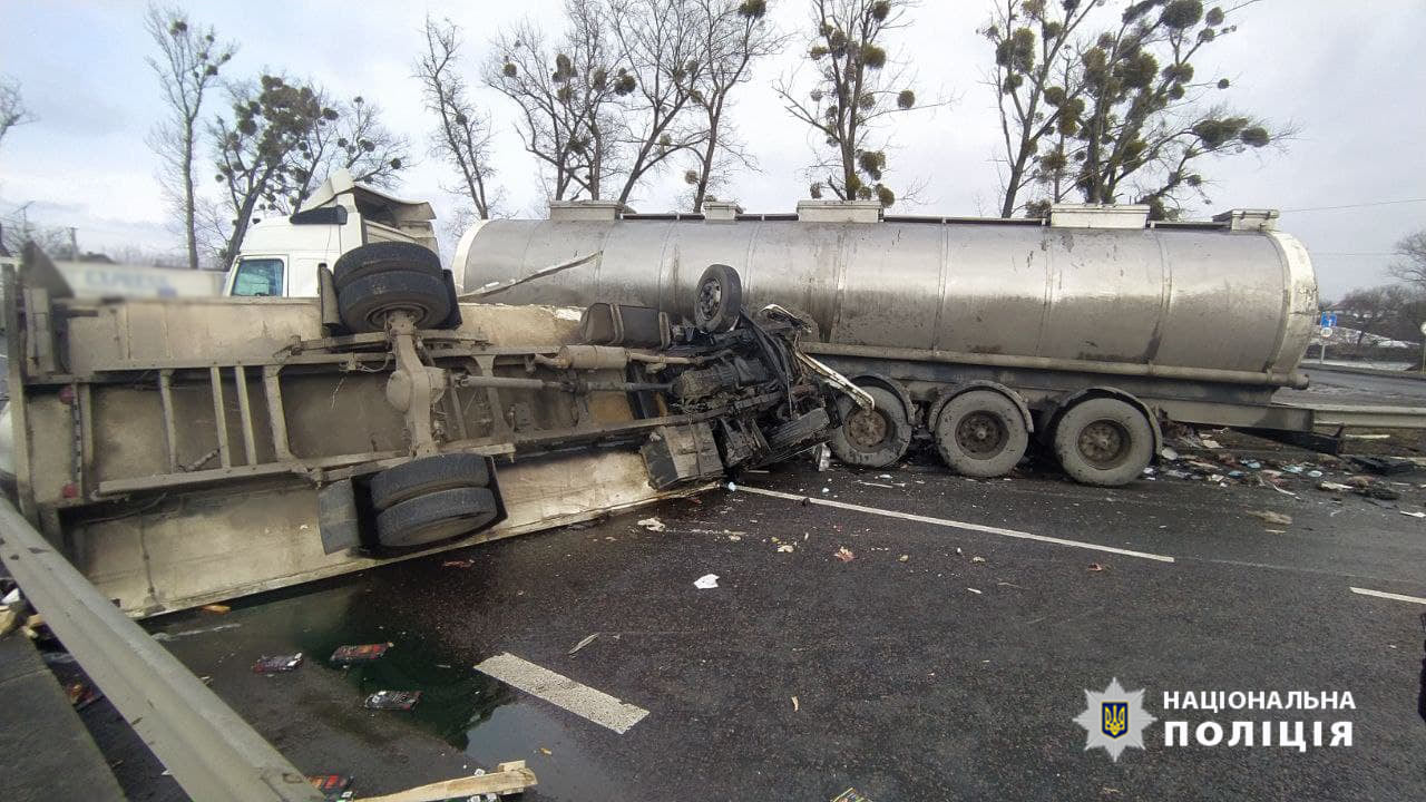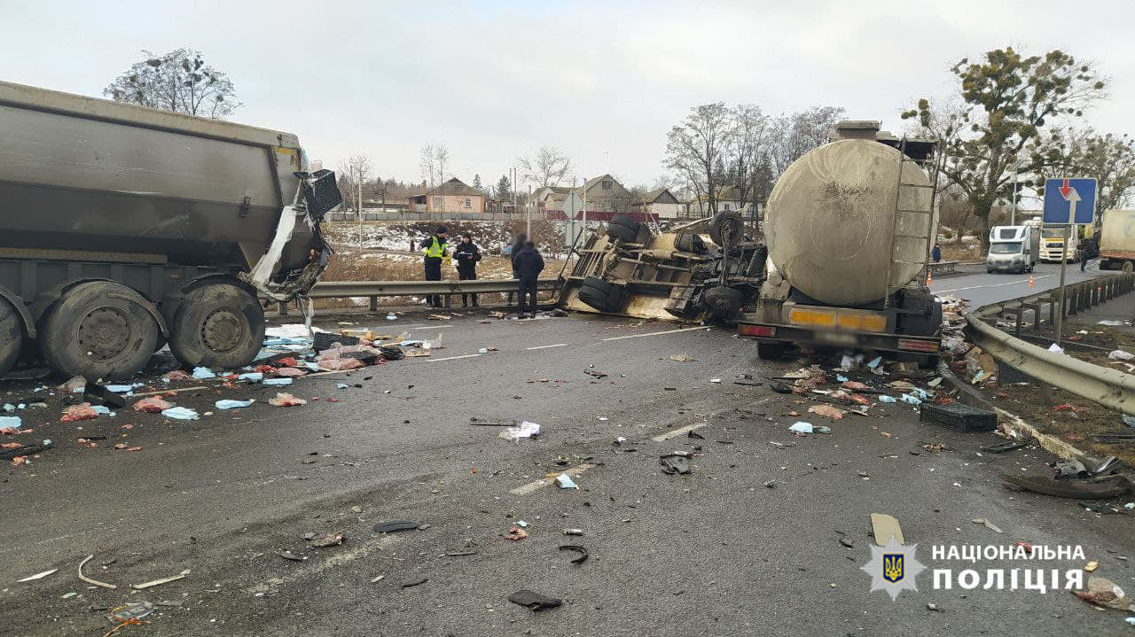 На автодорозі Стрий–Ізварине біля села Орадівка Уманського району зіткнулися три вантажних автомобілі. На місці події працюють поліцейські реагування патрульної поліції та слідчо-оперативна група.