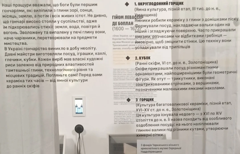 Серед представлених експонатів Черкаського міського археологічного музею Середньої Наддніпрянщини: