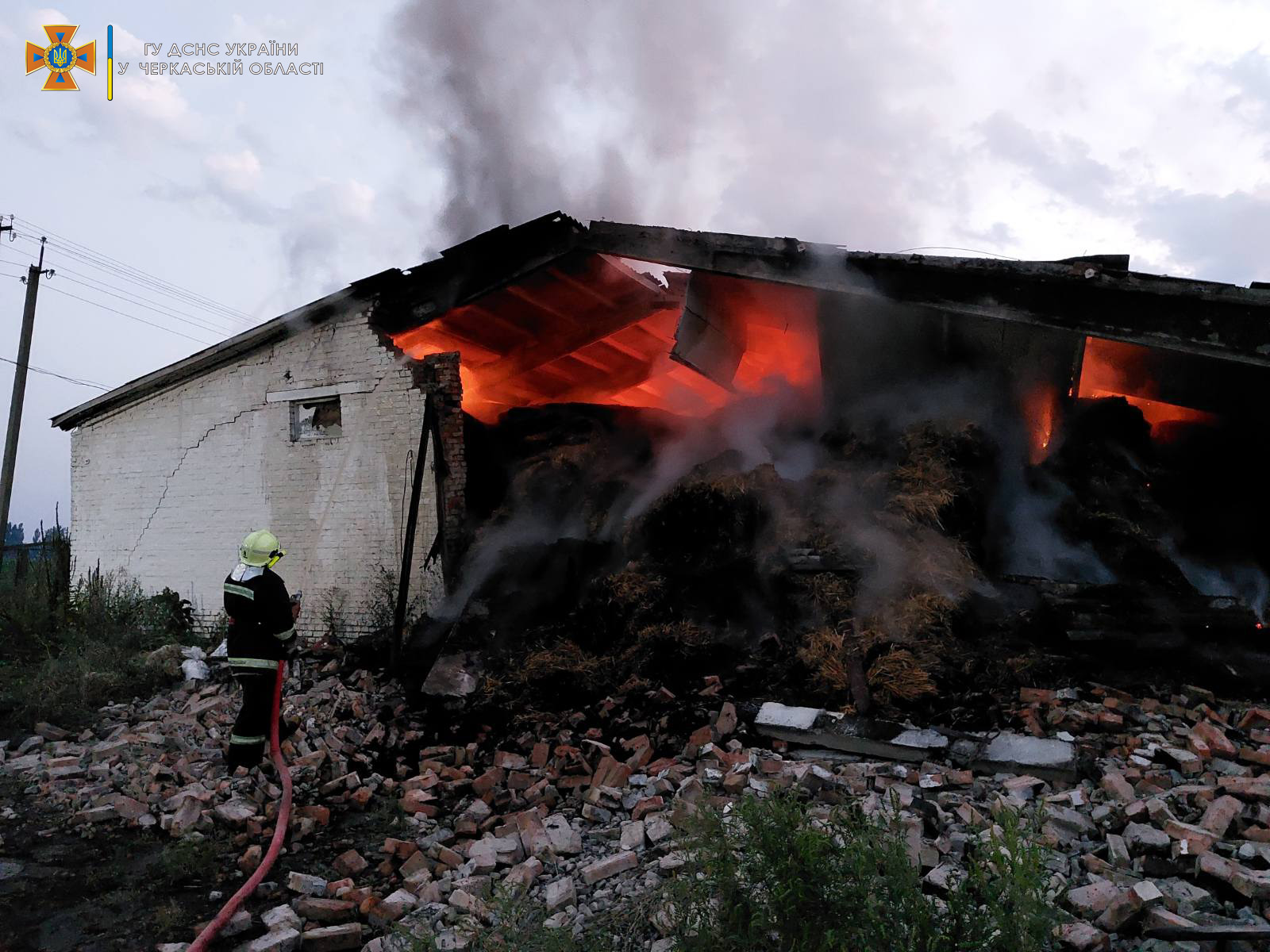 Загорілася господарча споруда вночі. Вогонь знищив 350 тонн соломи, що там зберігалася та всю покрівлю будівлі.
