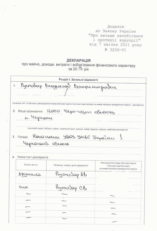 Згідно з документом, за 2013 рік Пустовар заробив 115 тисяч 758 гривень, а члени його сім'ї (він має дружину і сина, – vikka.ua) – 61 тис. 512 гривень.