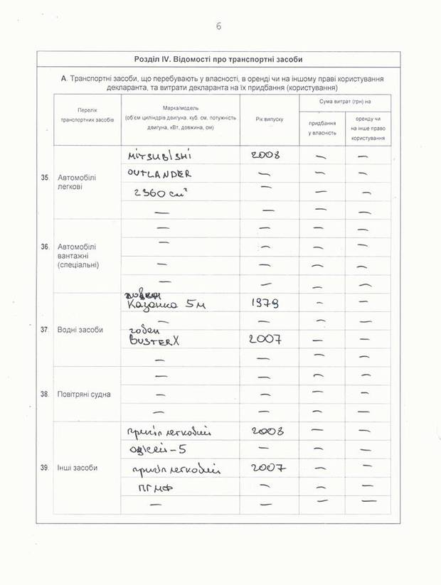 Владислав Пустовар має авто Mitsubishi Outlander 2008 року випуску, човен Buster X 2007 року  та два причепи.