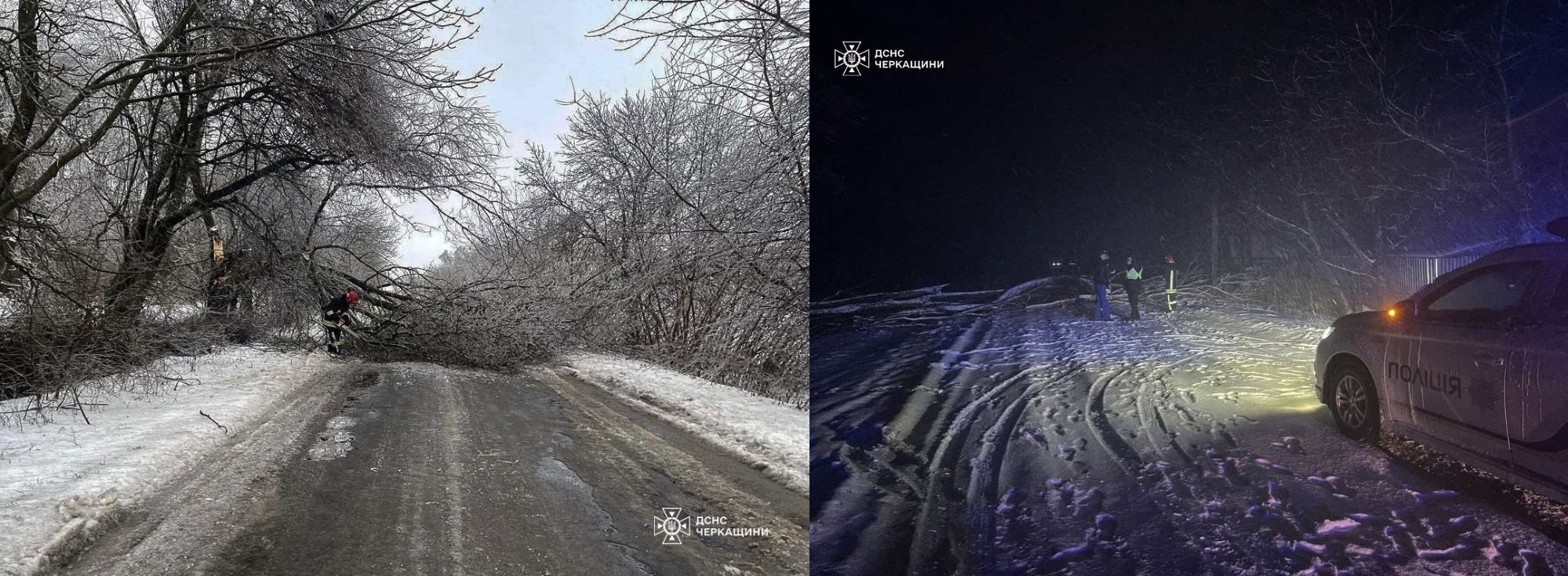 Ще один випадок зафіксували у Черкаському районі поблизу села Хацьки. Там проїжджу частину від поваленого дерева звільнили фахівці місцевої пожежної команди.