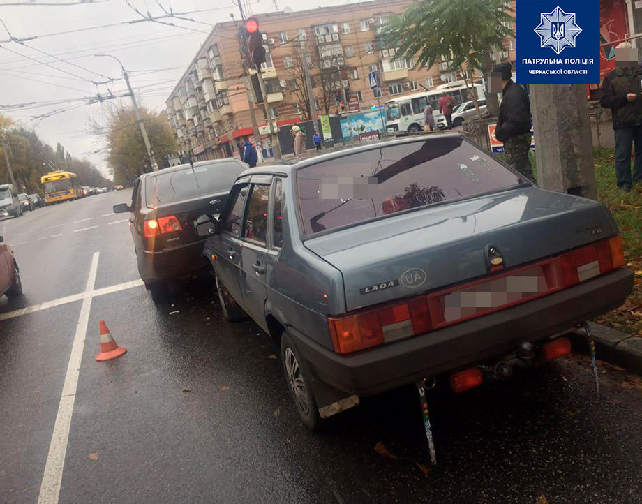 На вулиці Смілянській у Черкасах трапилась ДТП. 2 листопада водій ВАЗ 21099 не дотримався дистанції, не обрав безпечної швидкості руху й зіткнувся з Chery Amulet.