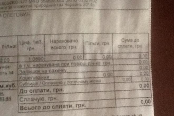 Міський голова Черкас Сергій Одарич виклав у Facebook платіжку за спожитий газ за червень. На ній видно, що за минулий місяць у будинку він його не використовував.