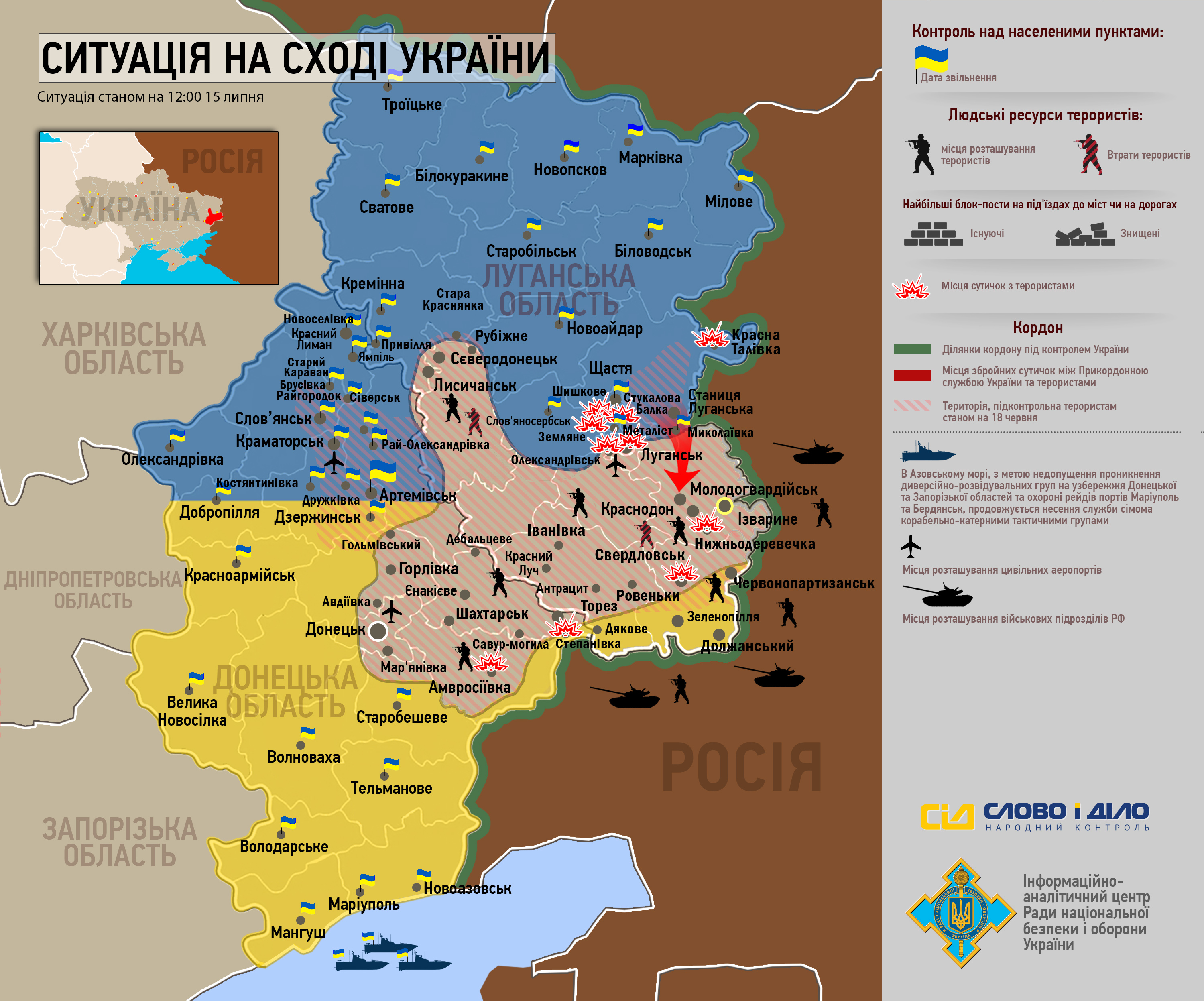 Карта АТО на 15 липня з'явилася на сайті "Слово і Діло".