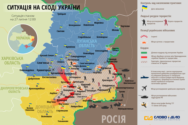 З’явилася карта антитерористичної операції станом на 12:00 27 липня.