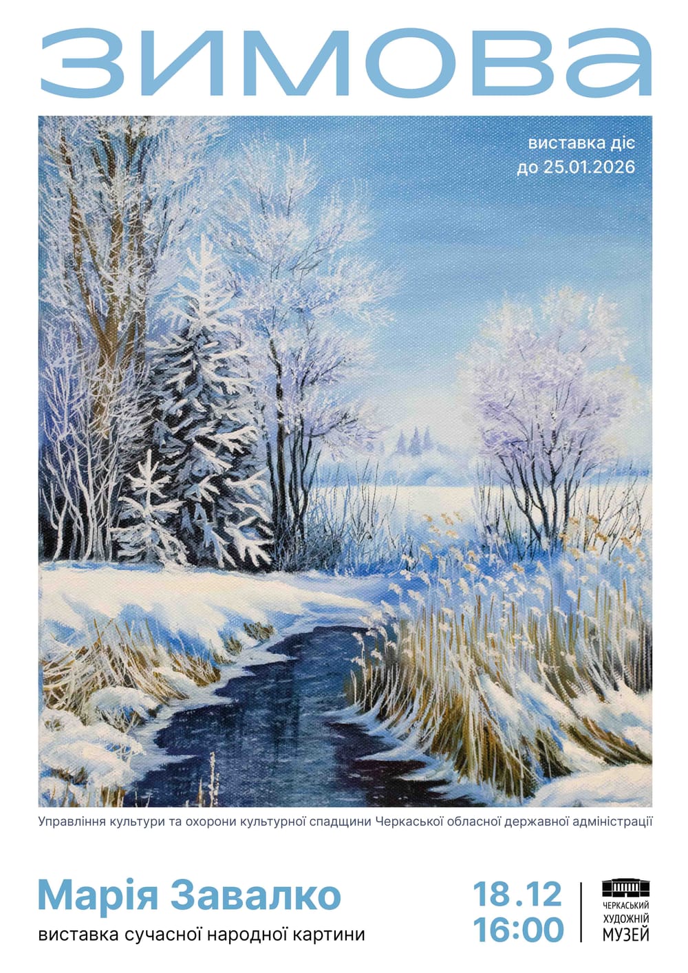 Для поціновувачів мистецтва продовжують працювати музеї з актуальними виставками. Черкаський обласний художній музей запрошує побачити сучасну народну картину «Зимова», персональну виставку «Сніжність» і інші цікаві експозиції, що надихають і налаштовують на святковий лад. Окрім того, в Черкаському обласному краєзнавчому музеї триває фотовиставка «Бережімо нашу спадщину», яка розповідає про красу й цінність архітектурної та культурної спадщини нашого регіону.