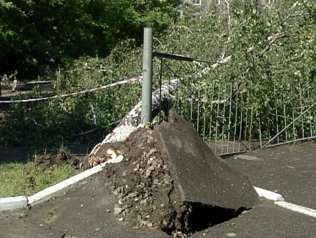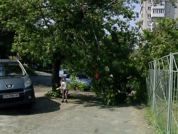Під час нічної негоди на території Другої дитячої поліклініки в Черкасах упало двоє дерев. Одне з них звалило паркан.