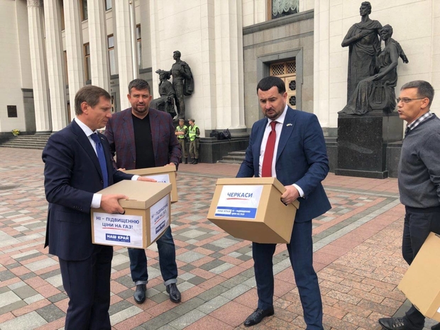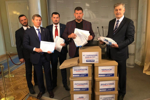 Протягом двох місяців по всій Україні тривала кампанія "Ні — підвищенню ціни на газ!". За цей час активісти та волонтери зібрали понад мільйон підписів громадян, які вимагають від влади не підвищувати ціну на українське "блакитне паливо". Партійці від "Нашого краю" сьогодні принесли до парламенту кілька із 50 коробок із підписами, а одну із них – вручили Прем’єру.