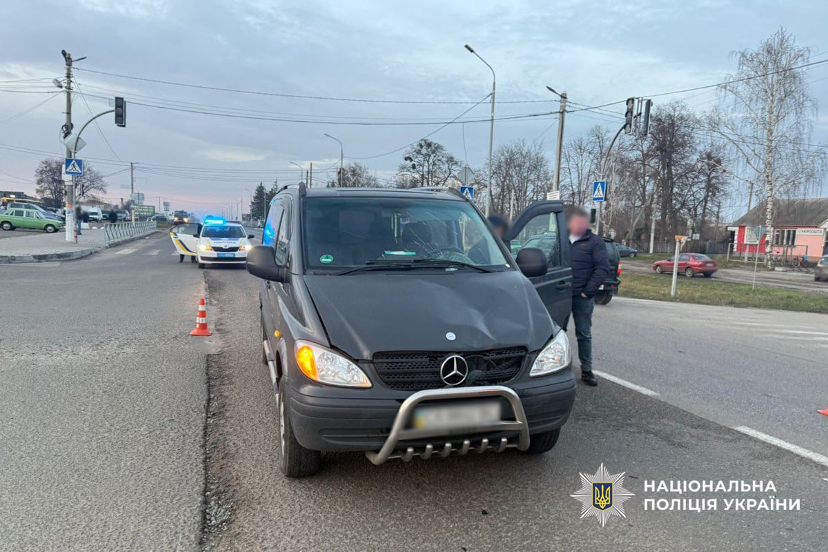 Дорожньо-транспортна пригода сталася вчора близько 15:30 на вулиці Чигиринський Шлях у селі Слобода. Поліцейські попередньо встановили, що 59-річний водій автомобіля Mercedes-Benz Vito скоїв наїзд на жінку, яка переходила дорогу по пішохідному переходу.