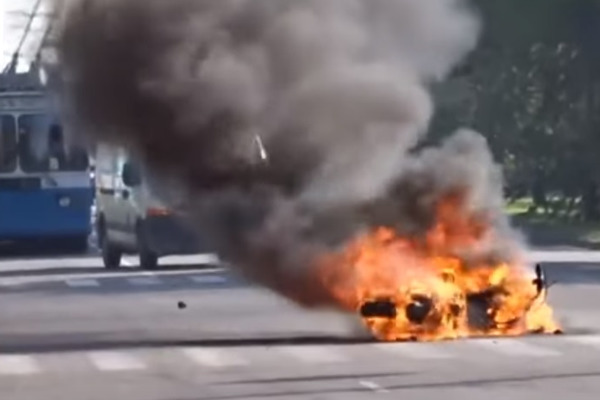 "Водій відбувся подряпинами, а от його двоколісний миттєво загорівся. В цей момент повз проїжджала поливальна машина. Водій спокійно виліз з кабіни, відкрив воду і ще до приїзду рятувальників загасив полум’я. Ті, приїхавши, лише залили вщент вигорілий мотоцикл піною і прибрали його з дороги", – розповіли у студії.