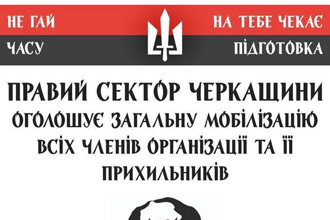 У зв’язку з всеукраїнською мобілізацією "Правого Сектору" та посиленням агресії Росії в Україні, "Правий Сектор" Черкащини розпочав загальну мобілізацію.