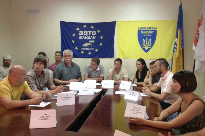 Як зазначив представник Автомайдану під час зібрання громадських організацій, голова Черкаської ОДА Юрій Ткаченко відмовився прийти до них, тому що перебуває у відрядженні. Натомість в обласну прокуратуру їх узагалі не впустили.