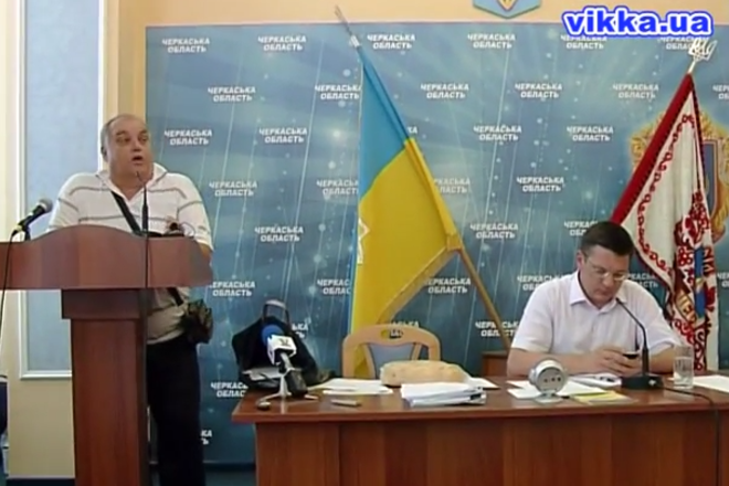 Радник голови Антикорупційного комітету, представник Партії пенсіонерів України Володимир Матюша сьогодні під час сесії міської ради подарував міському голові Черкас Сергію Одаричу батон.