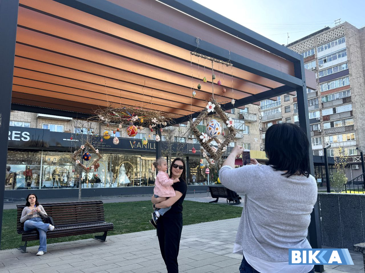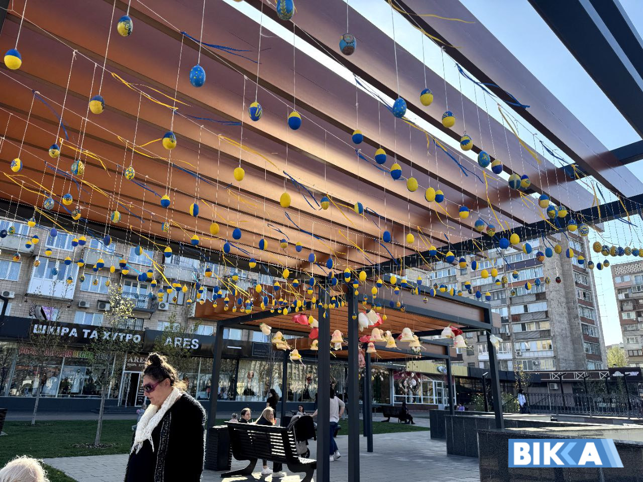У Черкасах створили великодню атмосферу. У сквері “Юність” встановили тематичні інсталяції, прикрасили перголи яскравими крашанками, стрічками та дзвіночками.