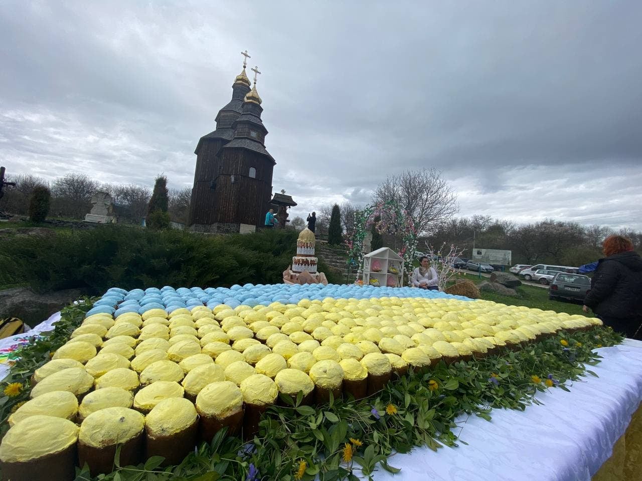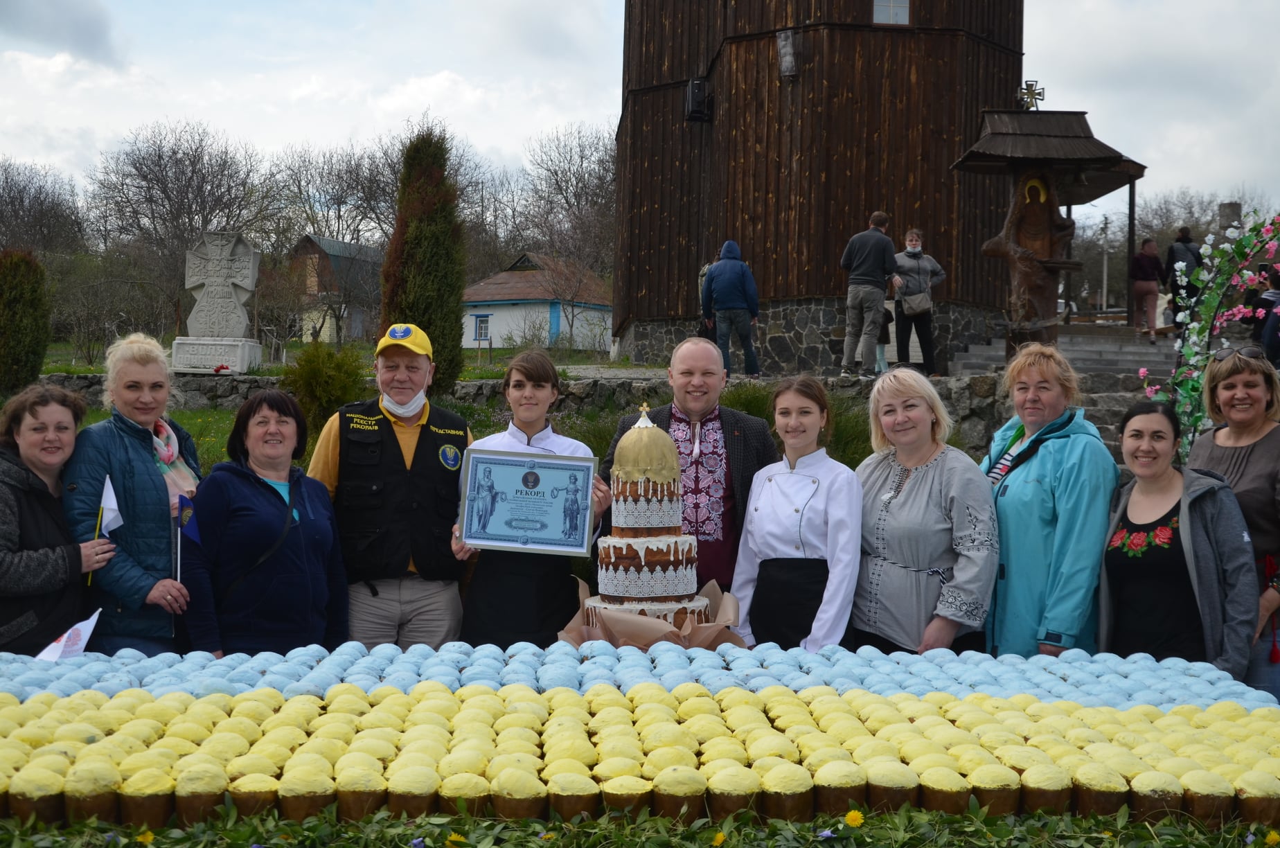 Так, організатори виклали прапор України із 612 пасок, змащених блакитною та жовтою глазур’ю. Щоб створити таку кількість великодніх символів, знадобилося майже 70 кг борошна, 25 кг цукру, 13 кг маргарину, 286 яєць, 10 кг родзинок, майже 3 кг дріжджів, ванільний цукор та вода.