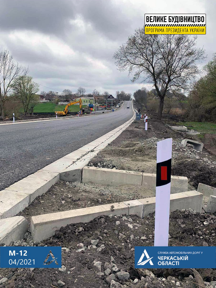 Вже влаштовано з’їзди з автодороги, завершено відсипання та укріплення узбіччя, влаштування тротуарів, автобусних зупинок та пішохідних переходів з автономним освітленням.