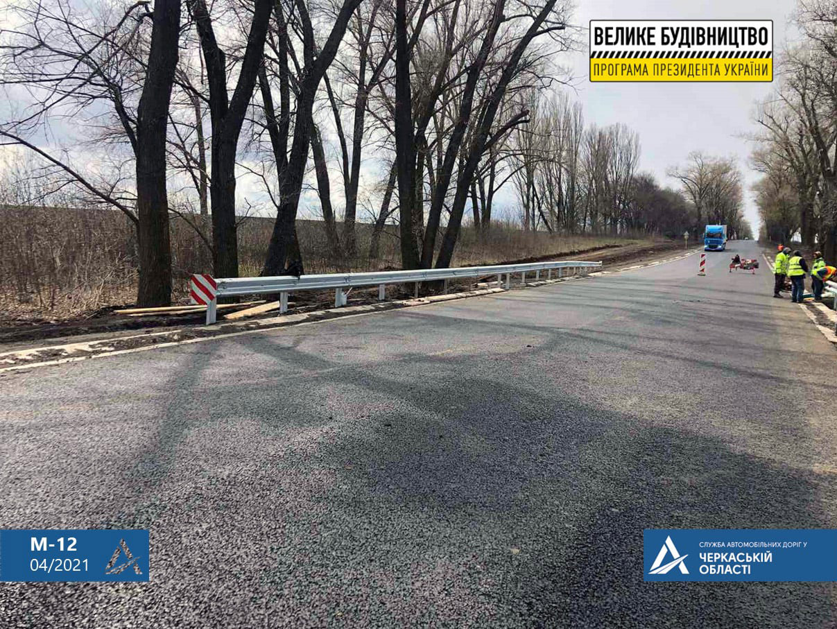 Новий конструктив дорожнього одягу на ділянці км 576+388 – км 583+279 автодороги М-12 Стрий – Тернопіль – Кропивницький – Знам’янка в Уманському районі складається з наступних шарів: основа зі щебенево-піщаної суміші обробленої цементом, вирівнюючий шар крупнозернистого асфальтобетону та фінішний верхній шар зі щебенево-мастикового асфальтобетону.