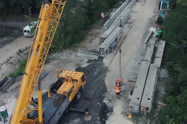 На цей час вже зведено проміжні опори, виконуються роботи із монтажу ригелів, проводяться підготовчі роботи до монтажу балок шляхопроводу.