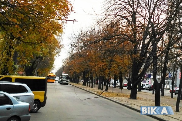 Унаслідок обриву тролейбусної лінії по бульвару Шевченка рух електротранспорту був призупинений. Дроти між вулицями Чорновола та Кривалівською звисали над проїжджою частиною, передає кореспондент vikka.ua.