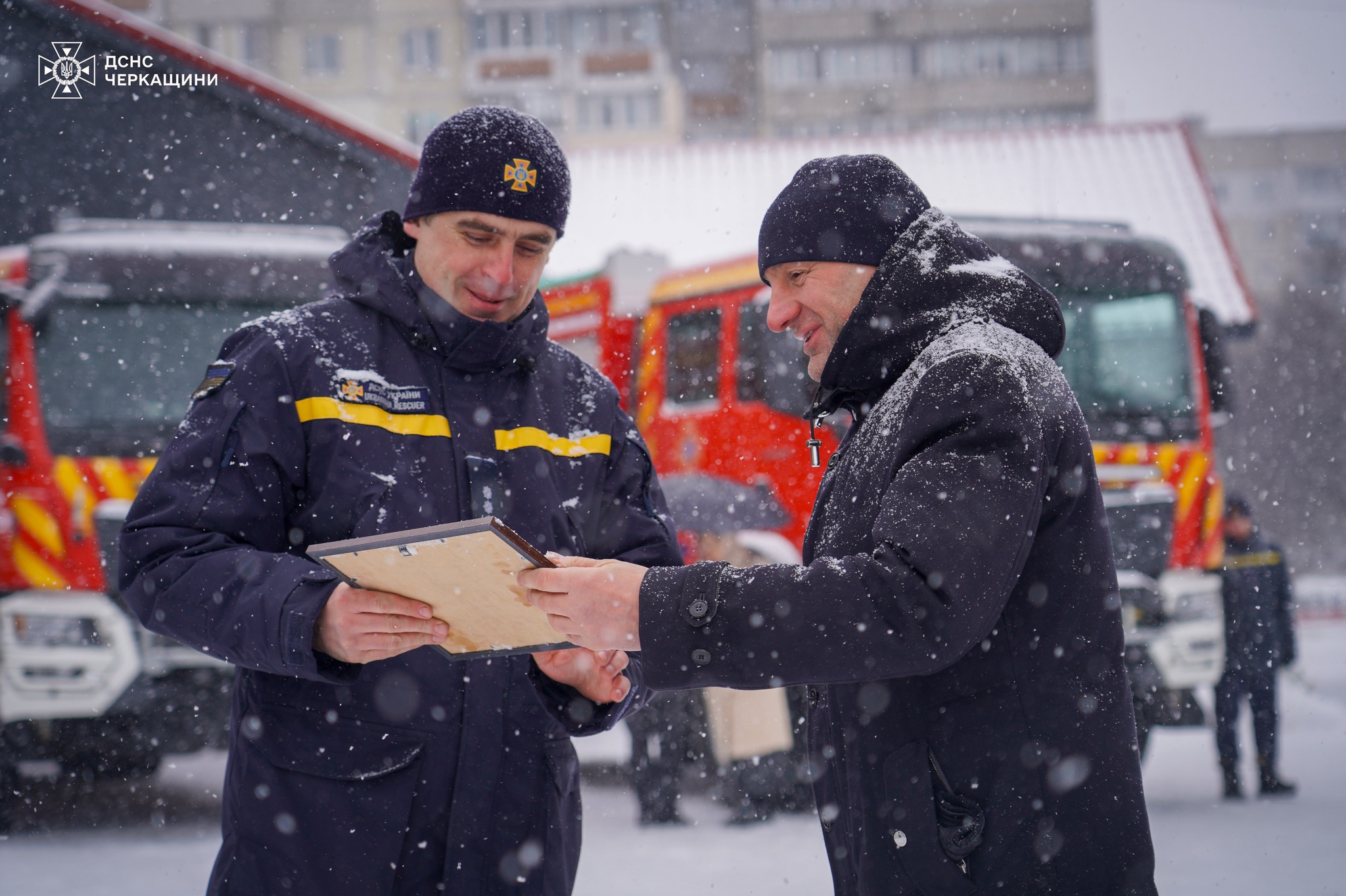 Під час заходу міський голова Черкас Анатолій Бондаренко також передав сертифікат на забезпечення рятувальників повсякденним форменим одягом. Окремо співробітників ДСНС відзначили державною нагородою — відзнакою Президента України «За оборону України».