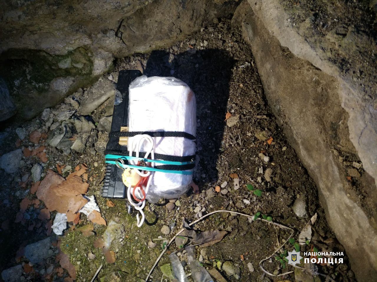 Біля сільського бару у сміттєвому баці люди знайшли коробку з миготливою лампочкою та обмотану в провід.
