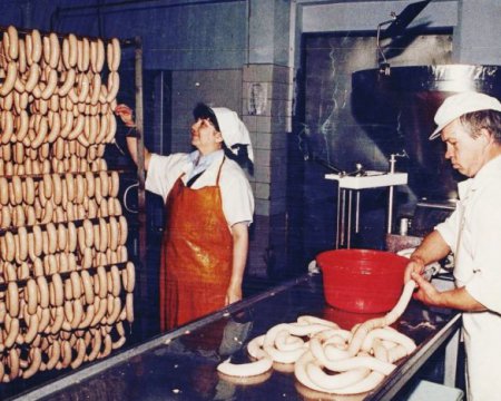 А вже після 80 року, воду з ковбаси просто вичавлювали руками. Десь до третини ваги.