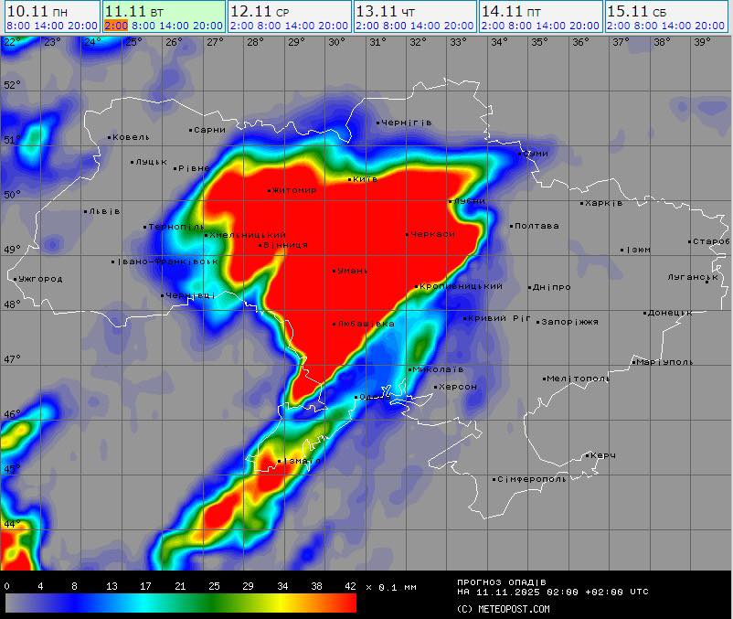 За прогнозом синоптиків, вдень 11 листопада NIKSALA переміститься до східних кордонів України, а Черкащина опиниться у тиловій частині циклону. Це означає, що дощі поступово вщухатимуть, однак вітер змінить напрямок на північний, приносячи прохолодніше повітря.