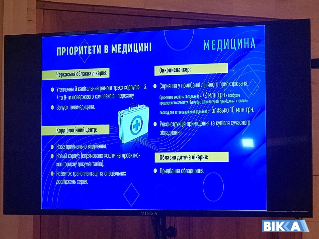 У планах на найближчий рік – зробити переворот у медичній галузі, який передбачає капітальний ремонт Черкаської обласної лікарні, проект із реконструкції реанімаційного відділення у кардіоцентрі, придбання лінійного прискорювача для онкодиспансеру та обладнання в дитячу обласну лікарню.