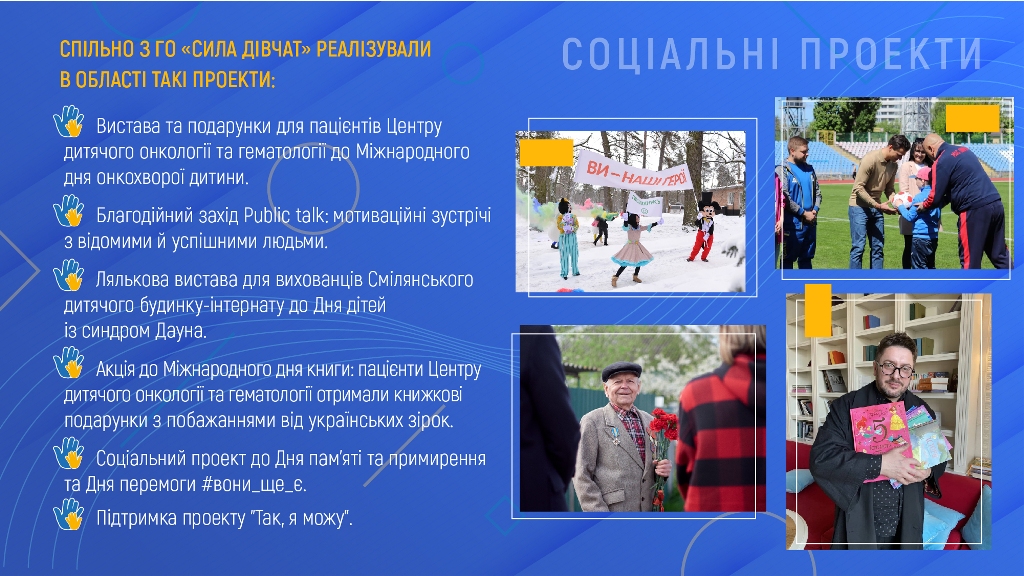 Зокрема, вже запланований проект створення інклюзивних дитячих майданчиків для відпочинку, інтерактивних ігор, реабілітації, соціалізації дітей із інвалідністю.