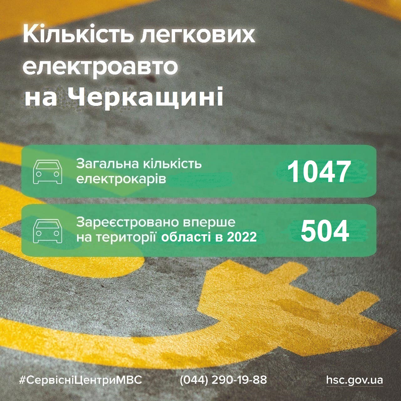 У 2022 році в Черкаській області зареєстрували 504 електрокари. Про це повідомили в регіональному Сервісному центру МВС.