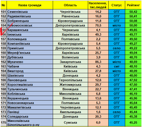 Цьогоріч це рейтинг найкращих 200 громад України станом на 1 липня. Інформація аналізувалася за наданими анкетами, а за їх відсутності – з відкритих джерел. Позначка "так" в опитувальнику без наявності інтернет-посилання, як підтвердження інформації, вважалася як "ні".