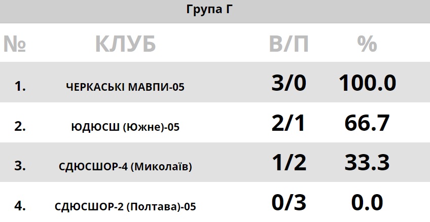 Боротьба вийшли лише у заключному матчі проти команди ЮДЮСШ. У грі з южненцями «Черкаські Мавпи-05» виграли першу чверть і тримали лідерство у кілька атак протягом усього матчу. Втім южненці завжди були близько в рахунку, однак у другій половині матчу черкасці не підпустили суперника і втримали перемогу – 65:58. Таким чином, з результатом 3:0 «Черкаські Мавпи-05» очолили групу Г ВЮБЛ.