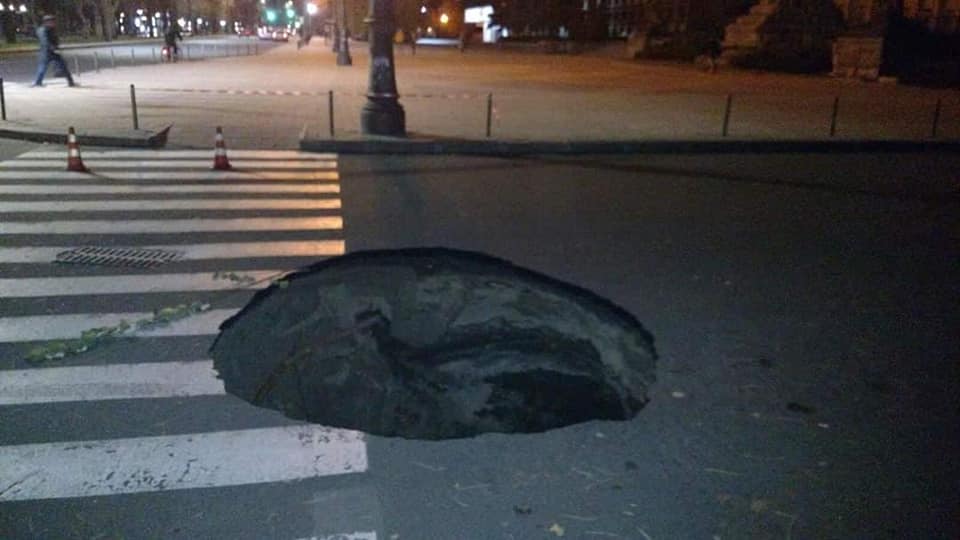 У Черкасах на перехресті бульвару Шевченка та вулиці Б.Хмельницького утворилось провалля в асфальті.