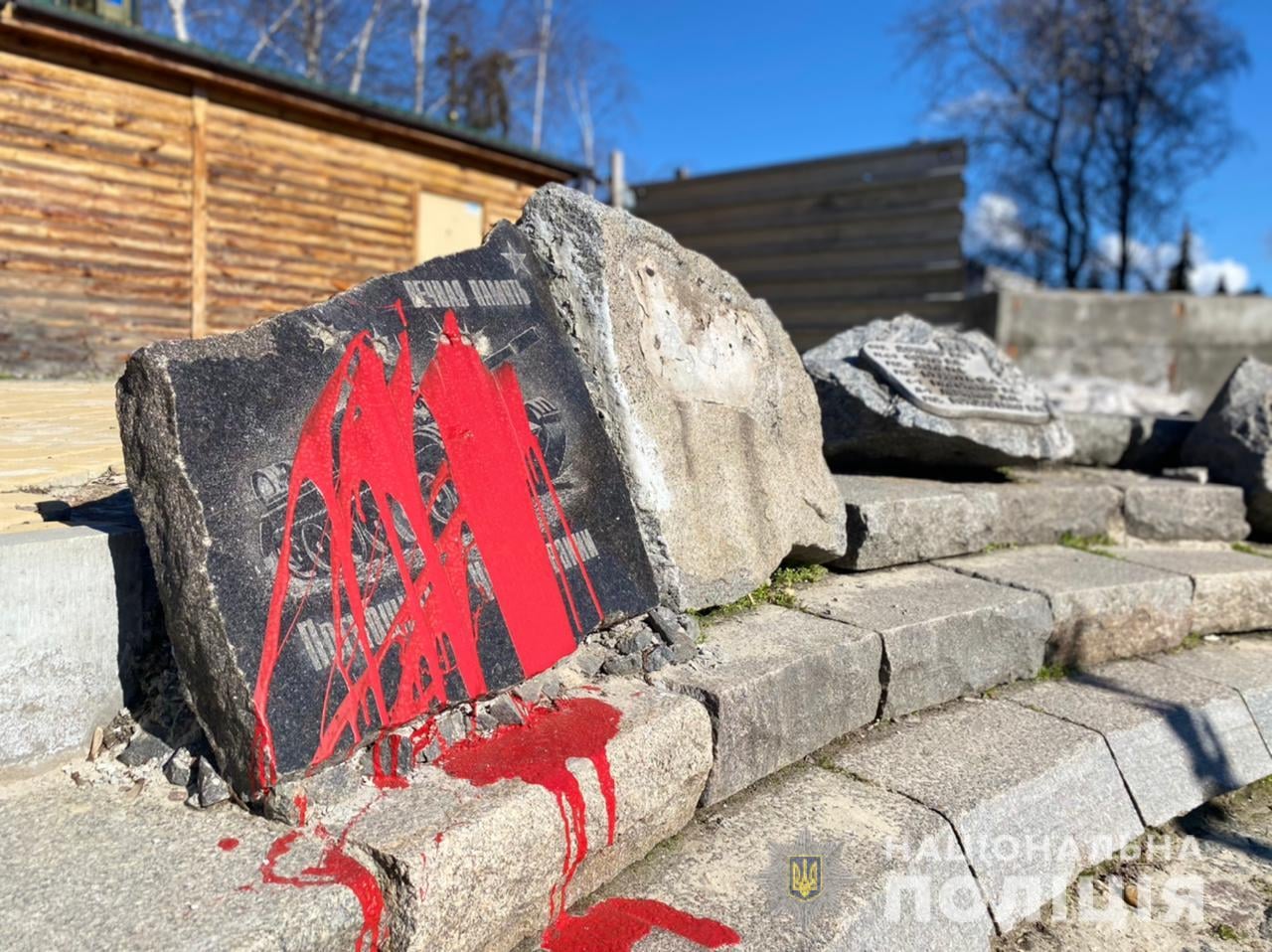 Слідчі задокументували факт осквернення пам’ятника. Наразі правоохоронці встановлюють осіб, причетних до скоєного злочину. За фактом осквернення пам’ятника відкрито кримінальне провадження. Винним загрожує покарання у виді обмеження волі на строк від трьох до п’яти років, або позбавлення волі на той самий термін.