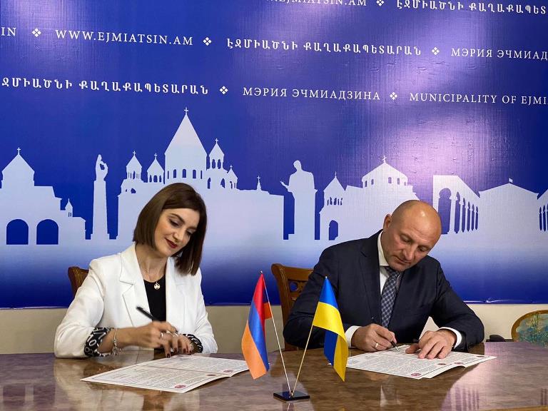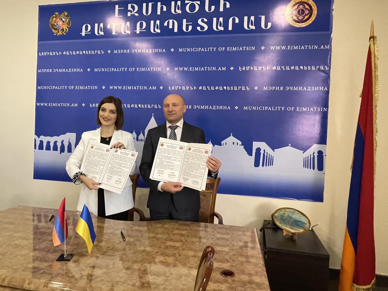 Угоду про встановлення побратимських відносин та співпраці між обома містами підписали очільник Черкас Анатолій Бондаренко та мер міста Ечміадзин Діана Гаспарян.