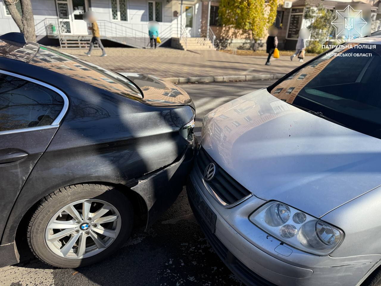 У Черкасах, на бульварі Шевченка сталася ДТП за участі двох автомобілів Volkswagen Touran та BMW 518. Про це повідомили у пресслужбі Патрульної поліції Черкаської області.