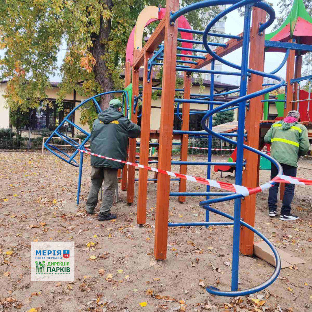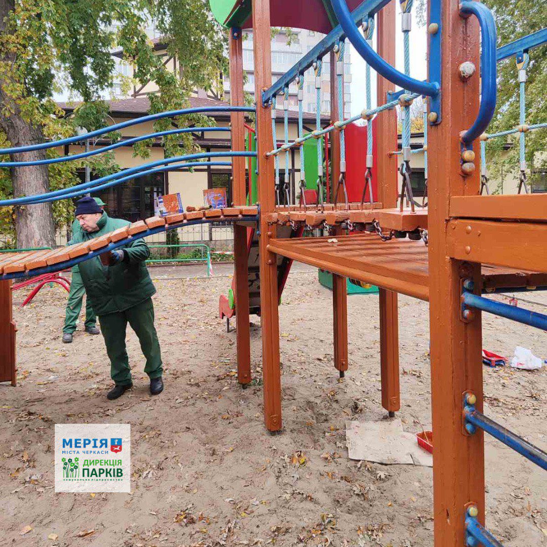 Фахівці підприємства провели повний комплекс ремонтно-відновлювальних робіт. Демонтовано пошкоджені конструкції та встановлено нові елементи, посилено кріплення, замінено дерев’яні деталі, а також виконано фарбування всіх конструкцій. Це не лише надало майданчику свіжого вигляду, а й захистило його від впливу погоди.