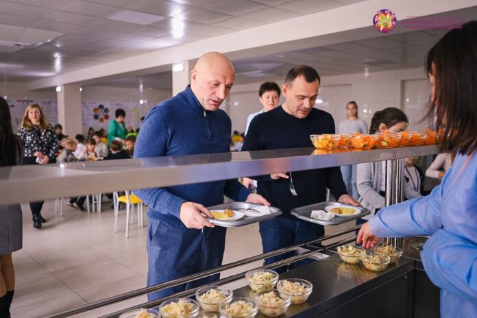 Під час візиту міський голова разом із дітьми навіть скуштував страви зі шкільного меню.