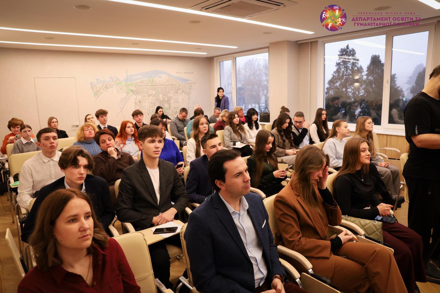 Фінальний захід програми пройшов у стінах міськради. Упродовж трьох місяців учні закладів загальної середньої освіти Черкас працювали в різних структурних підрозділах міської ради, знайомилися з управлінськими процесами та здобували практичний досвід участі в житті громади.