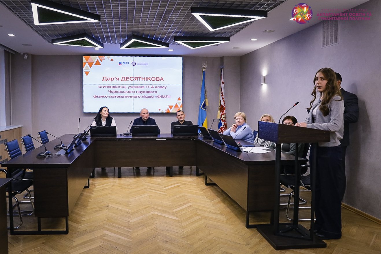 У Черкасах вручили свідоцтва про призначення муніципальних стипендій 25 найкращим учням міста — школярам, які протягом року демонстрували відмінні результати в навчанні та здобули вагомі перемоги у творчих, спортивних і наукових змаганнях. Про це повідомили в Департаменті освіти та гуманітарної політики Черкаської міської ради.