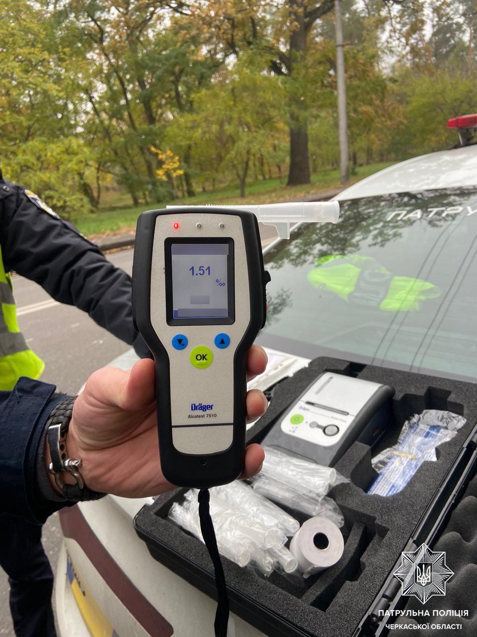 Під час спілкування з 51-річним керманичем патрульні помітили в нього ознаки алкогольного сп’яніння. Чоловік погодився пройти огляд за допомогою приладу Dräger. Результат — 1,51 проміле алкоголю у крові, що майже у вісім разів перевищує допустиму норму.