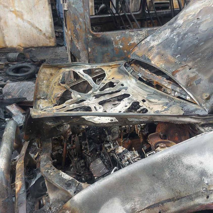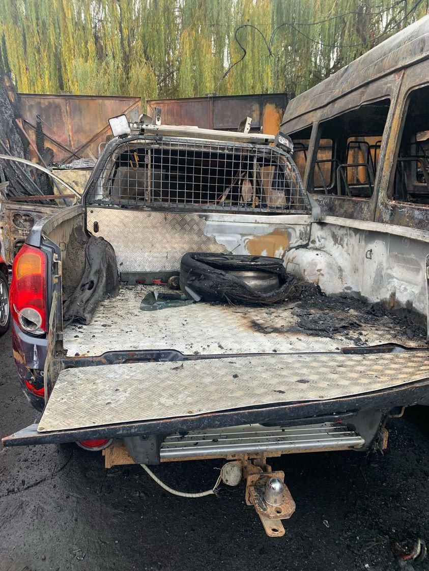 Як розповідає охоронець, пожежа почалась з пікапа, який був уже відремонтованим, і мав їхати на фронт. Далі вогонь перекинувся на бус, приміщення станції, де згоріло обладнання та мотоцикл власника СТО.