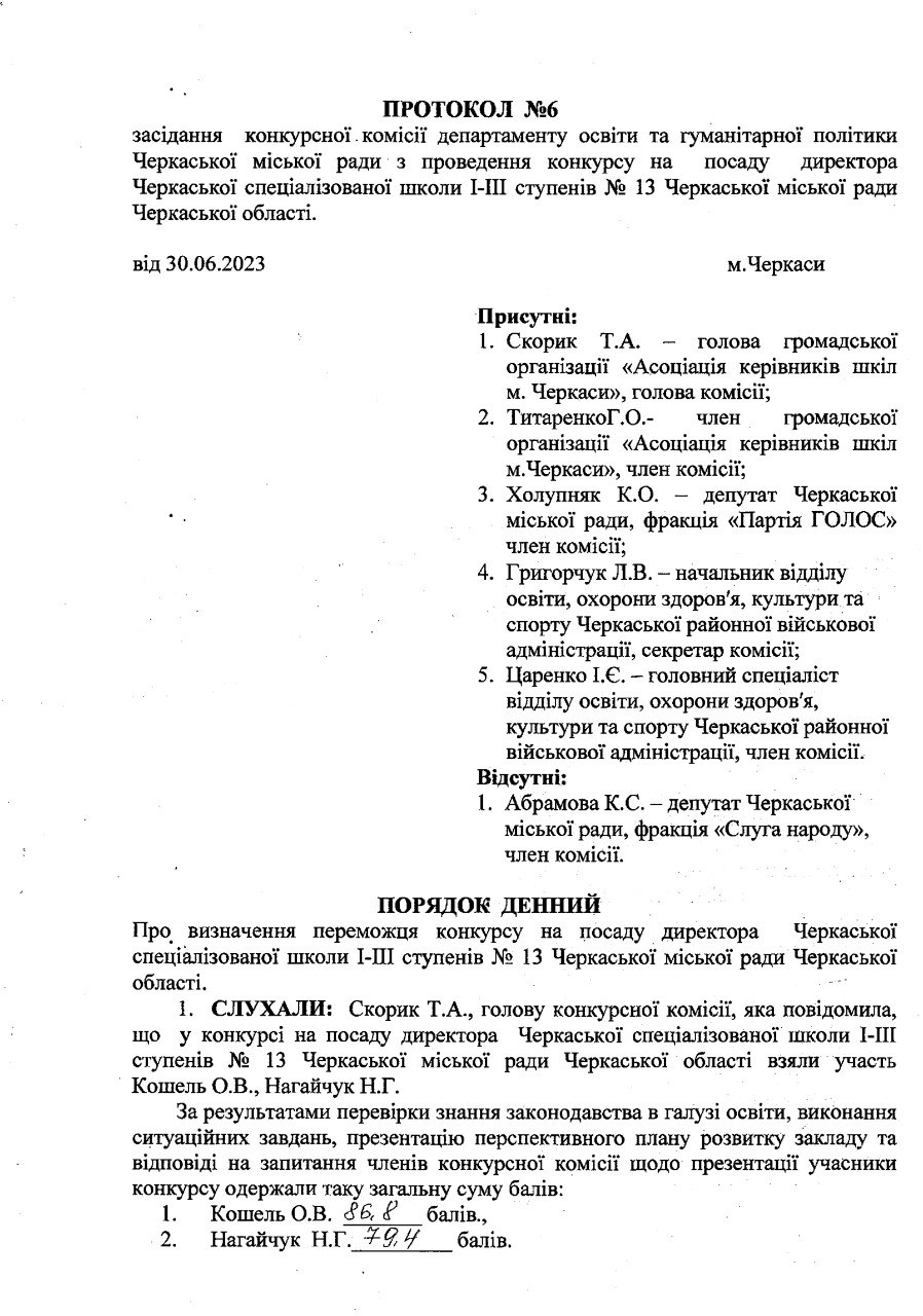У Черкасах обрали керівника школи № 13, яка розташована в районі «Д». За керівну посаду боролися два претенденти. Комісія визначила переможця. Нею стала – Олена Кошель. Про це повідомляється на сайті Черкаської міської ради.
