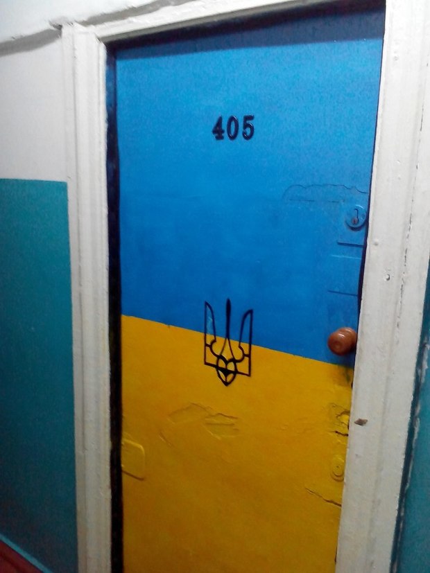 У першому гуртожитку Черкаського державного технологічного університету розфарбували двері у жовто-блакитні кольори.