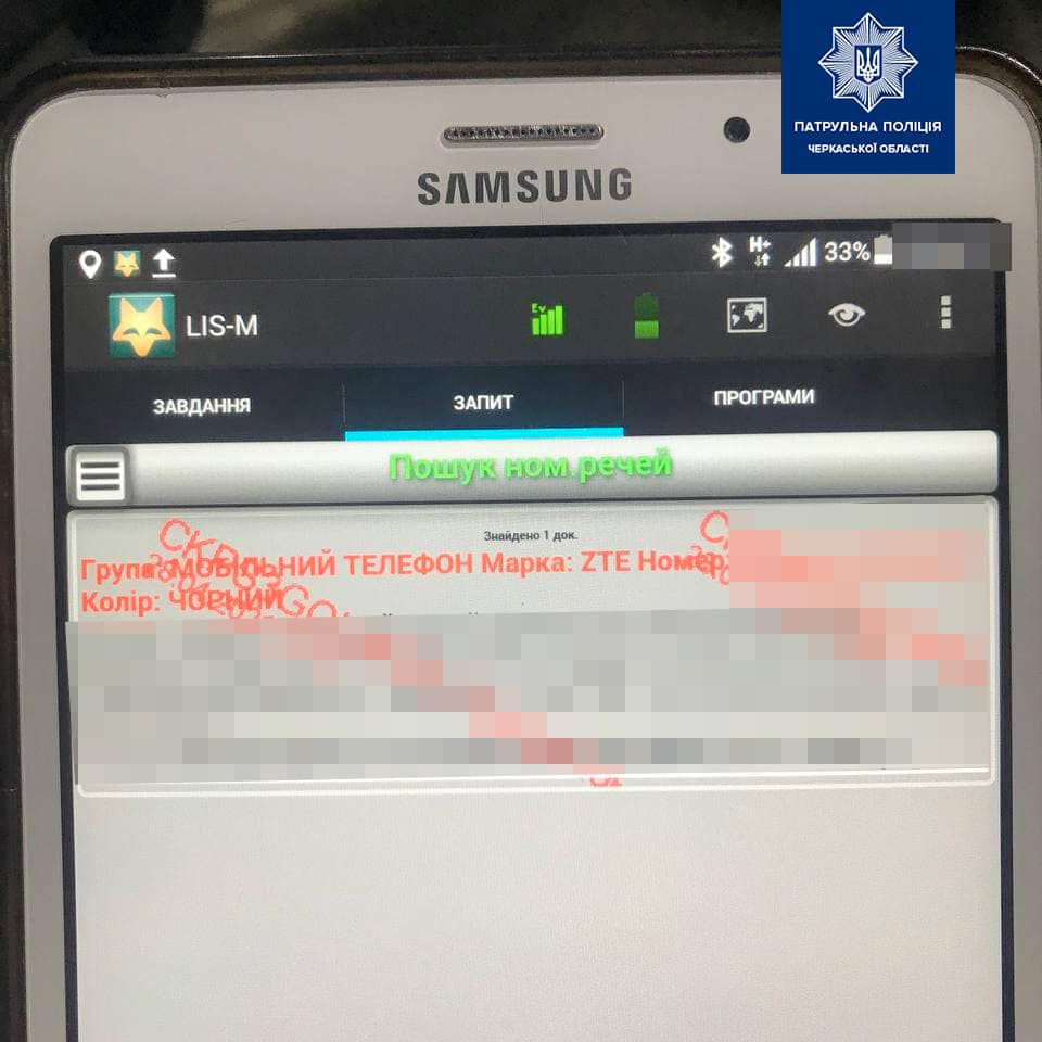 У Черкасах на вулиці Сумгаїтська поліцейські затримали чоловіка, який мав при собі викрадений телефон. Інцидент трапився 28 квітня близько 21:00.